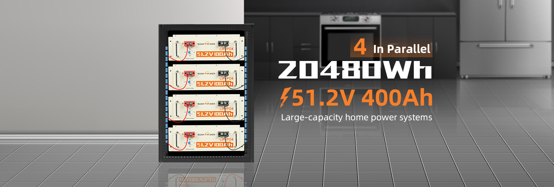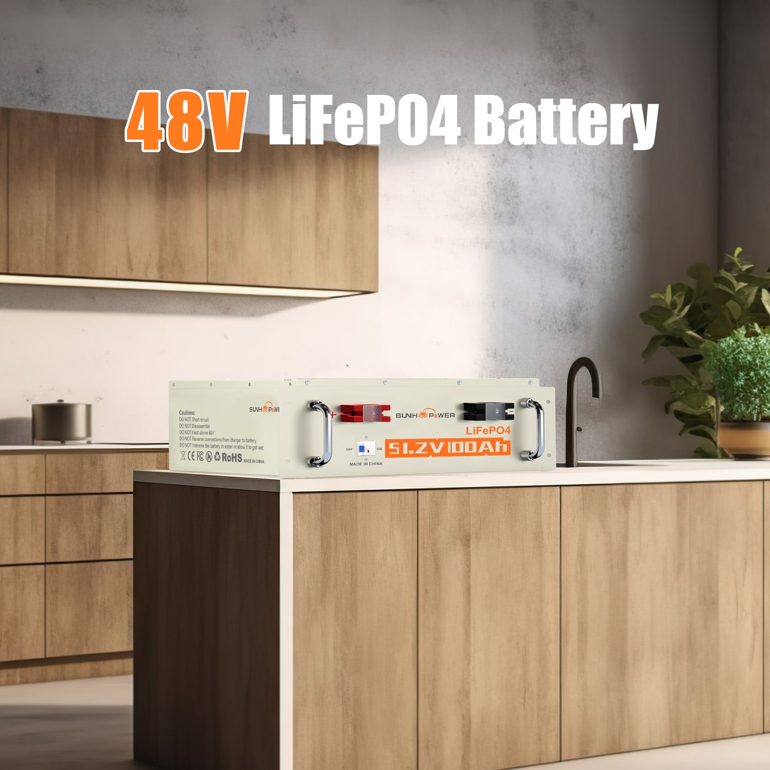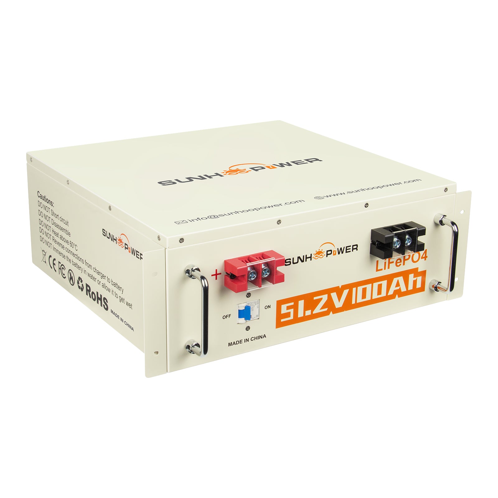 SUNHOOPOWER 51.2V 100Ah LiFePO4 Battery, Bulit-in 100A BMS, 5120WH Energy