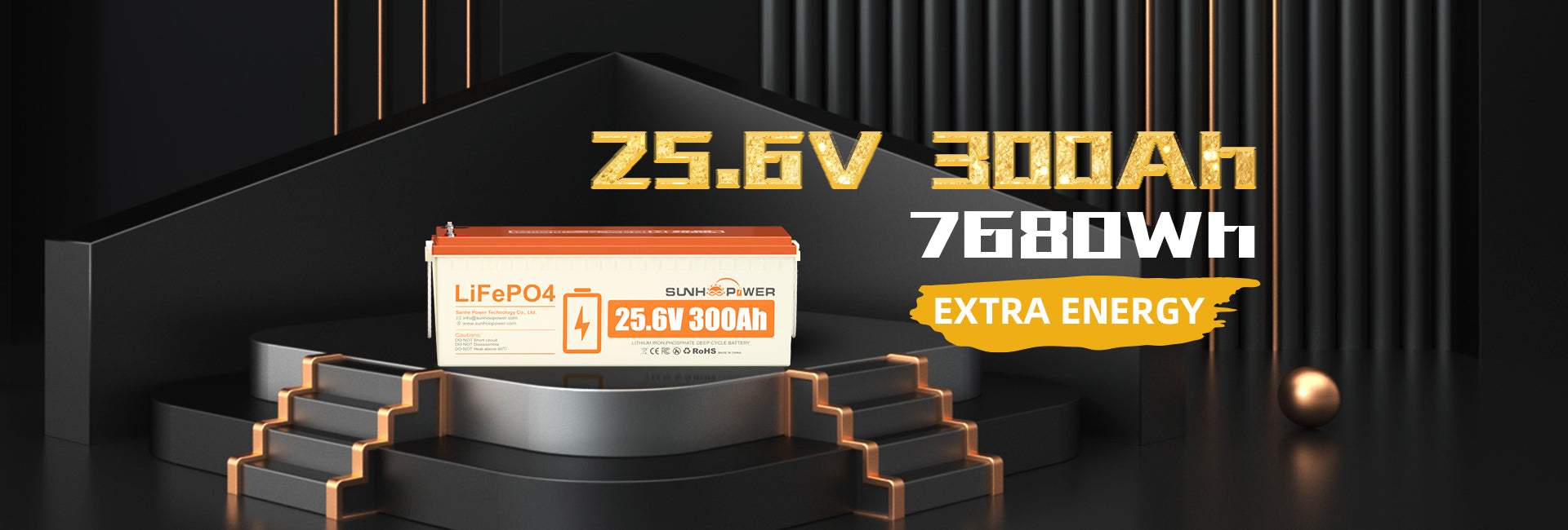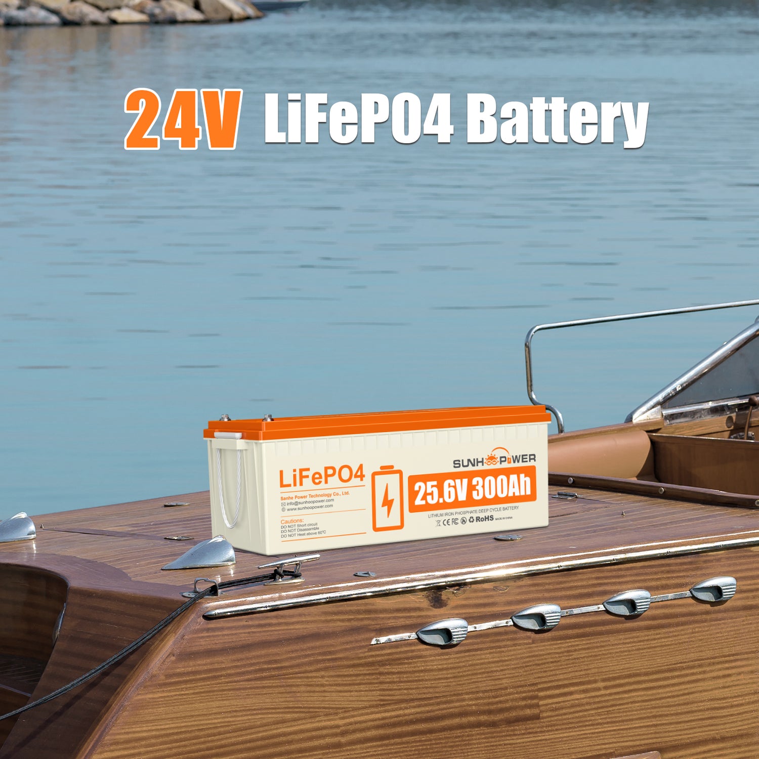 SUNHOOPOWER 24V 300Ah LiFePO4 Battery, Built-in 200A BMS, 7680Wh Energy