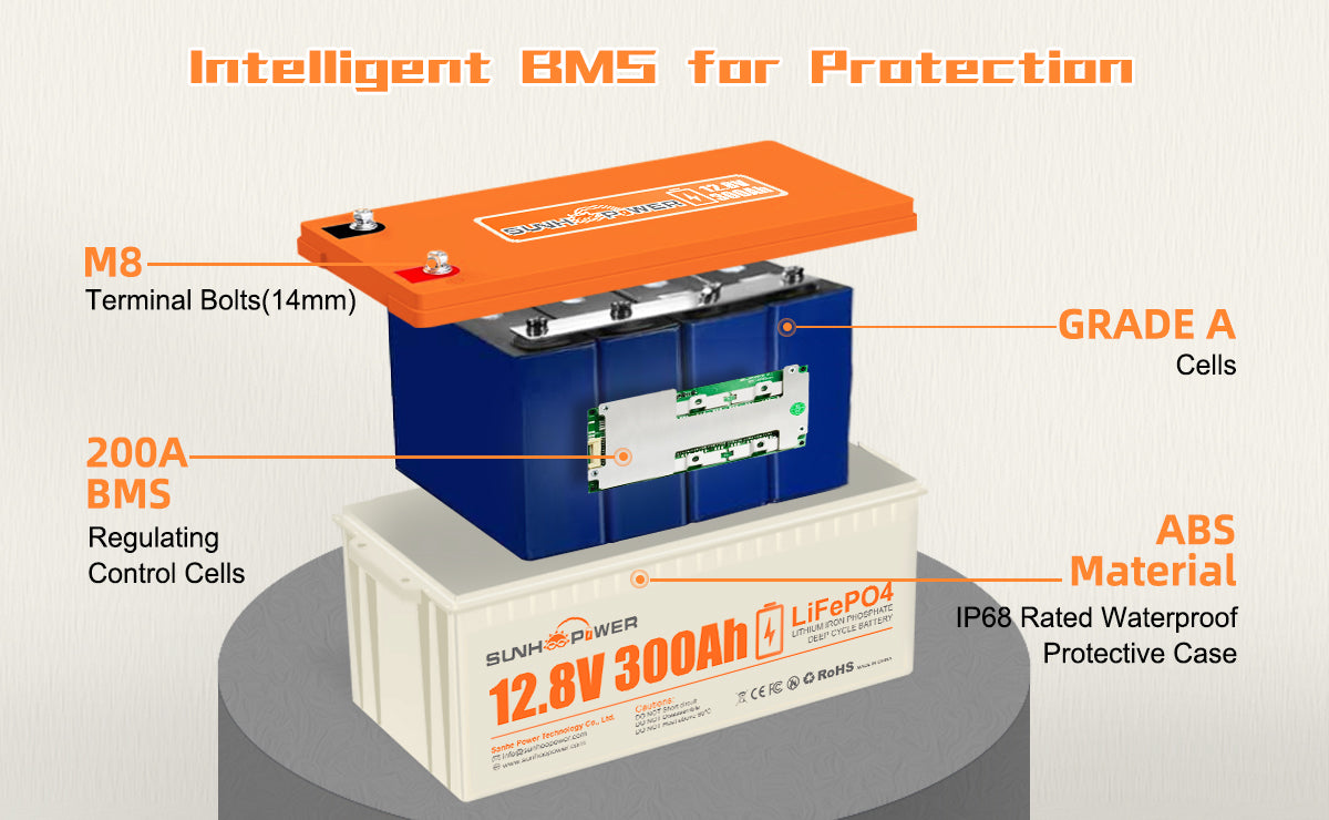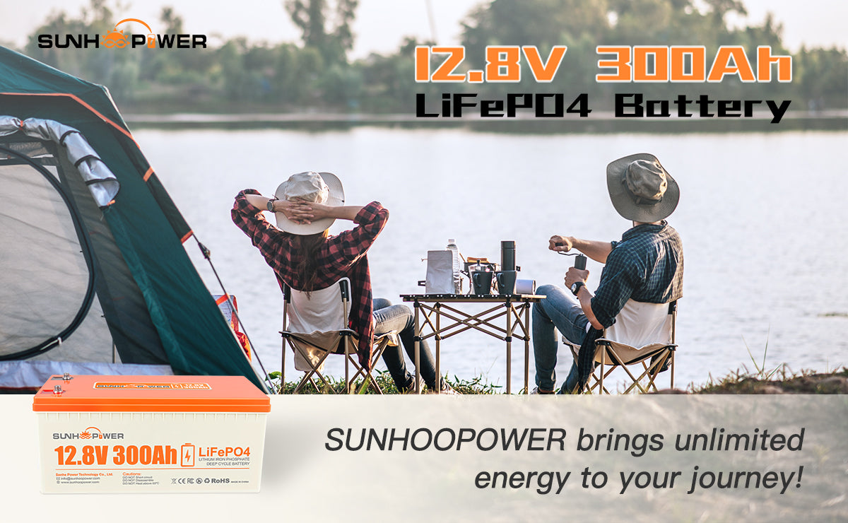 SUNHOOPOWER 12V 300Ah LiFePO4 Battery, Built-in 200A BMS, 3840Wh Energy