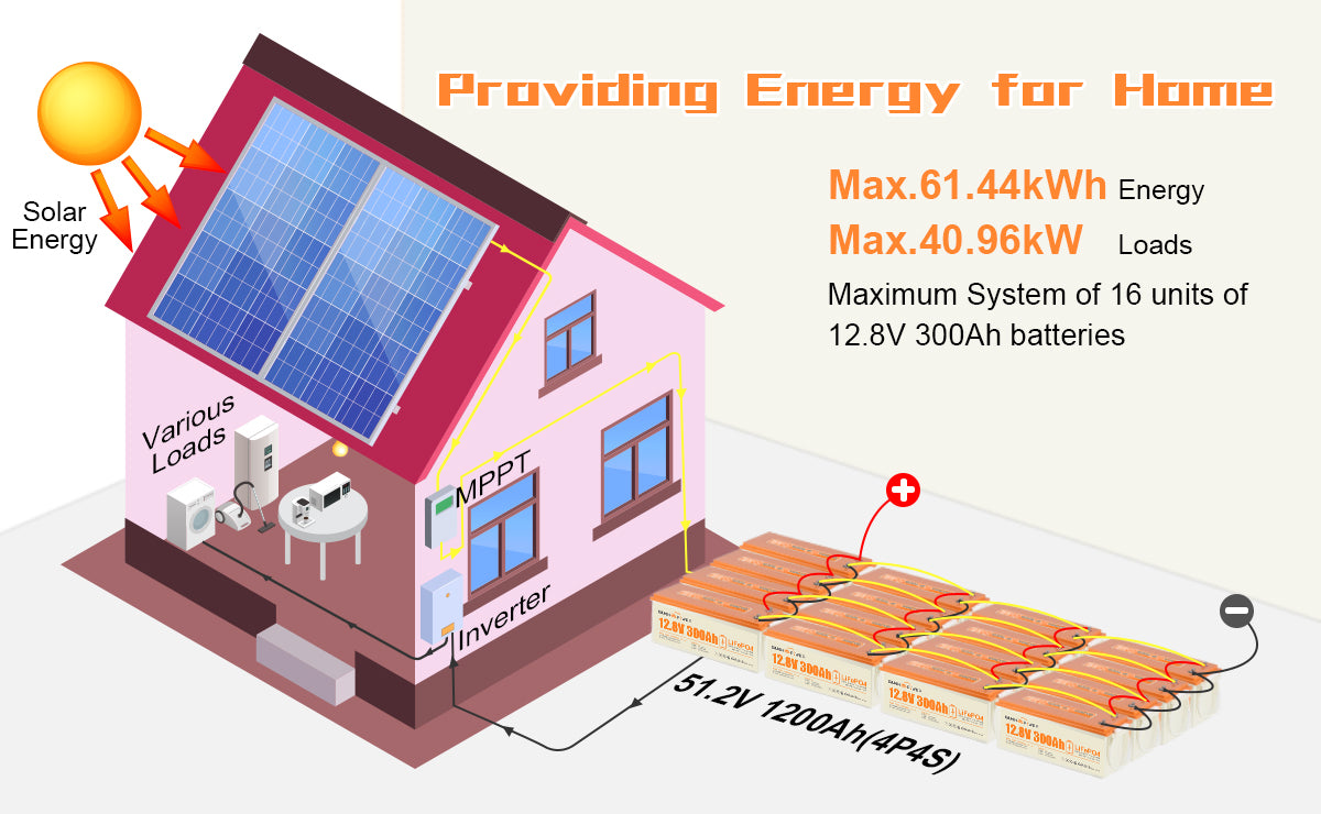 【Multi-Application】Because lithium batteries can be simply and easily connected in series and parallel as you need, 12V 300AH LiFePO4 batteries are perfect for off-grid solar systems and outdoor applications such as home backup power, RVs, camping, sailboats and more.